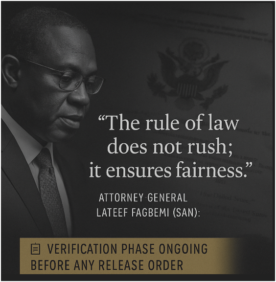 “The rule of law does not rush; it ensures fairness,” Fagbemi said — a quote now defining the administration’s cautious approach.