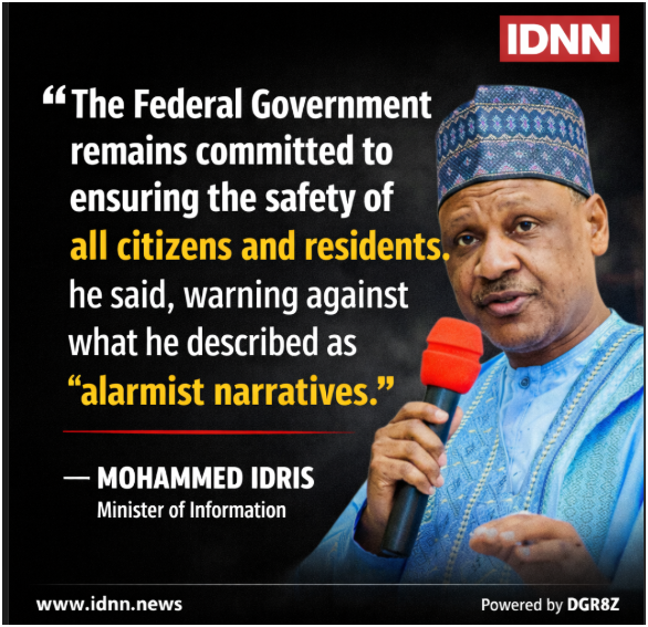 Nigeriaโs Minister of Information and National Orientation, Mohammed Idris, rejected the warning, describing it as exaggerated and capable of creating unnecessary alarm.